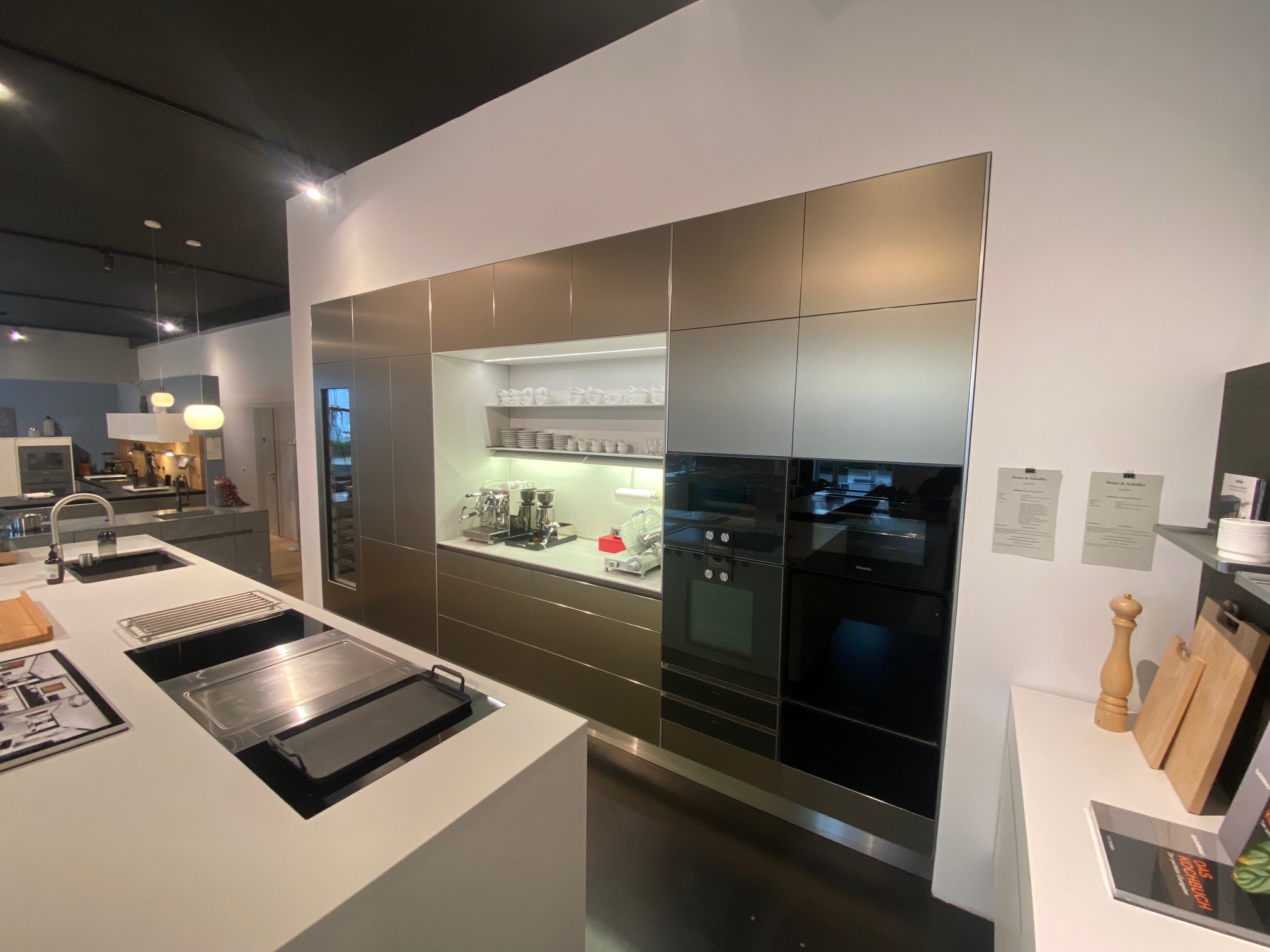 | Sonstige Geräte: | Bulthaup b3 Aluminium sandbeige, Konbination Griffleiste und grifflos, Arbeitsplatte Kunststoff 1 cm stark Wandseite: 463 cm breit, 70 cm tief, 272 cm hoch, Programm A3AX Aluminium sandbeige Vorführküche, daher reichhaltige Innenausstattung ohne Geräte: Abholpreis: Euro 18.900.-- |